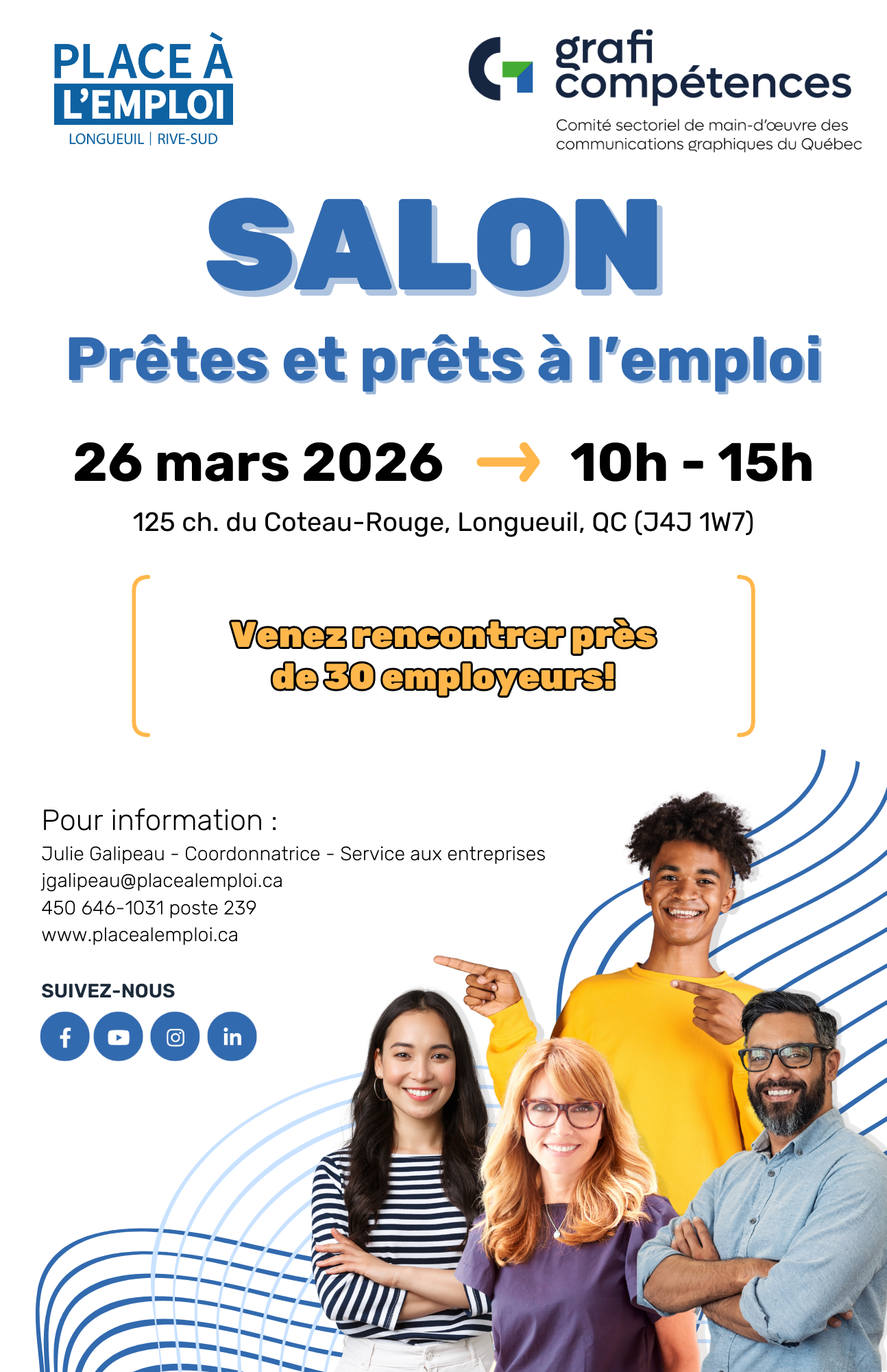 COMMUNIQUÉ – Le Comité sectoriel de main-d'œuvre en communications graphiques avec Place à l’emploi annoncent avec fierté leur partenariat pour la tenue d’un salon de l’emploi, qui aura lieu le 26 mars 2026 à Place à l’emploi, situé au 125 ch. Du Coteau-Rouge à Longueuil.