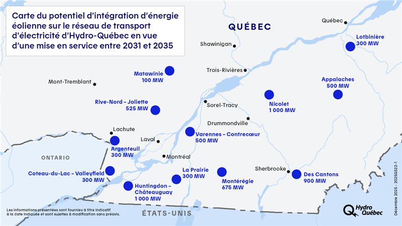 Hydro-Québec a lancé un appel d'offres pour l’acquisition d’énergie éolienne partout au Québec, dont en Montérégie, dans le but de répondre à la croissance soutenue de la demande en électricité.